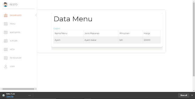 kalau sudah mengklik excel lalu akan muncul download data excel :